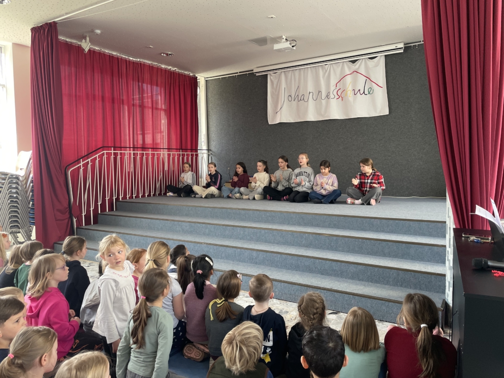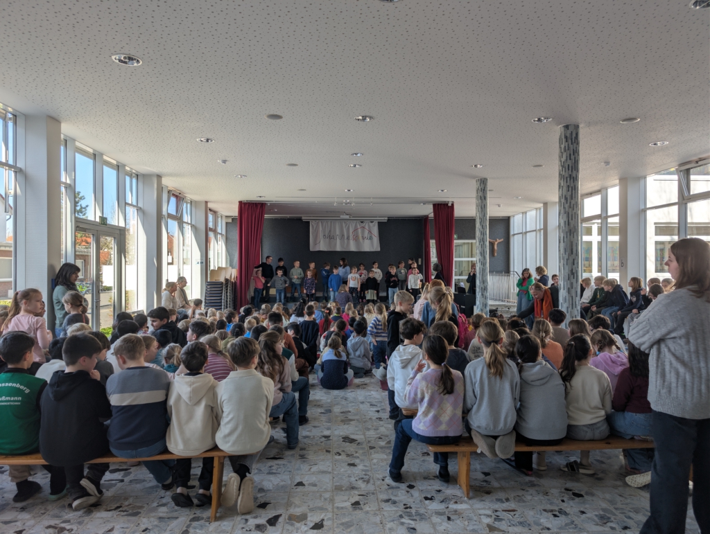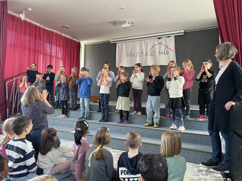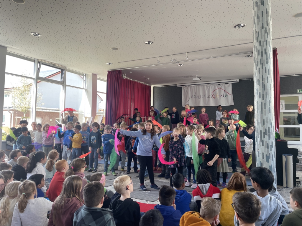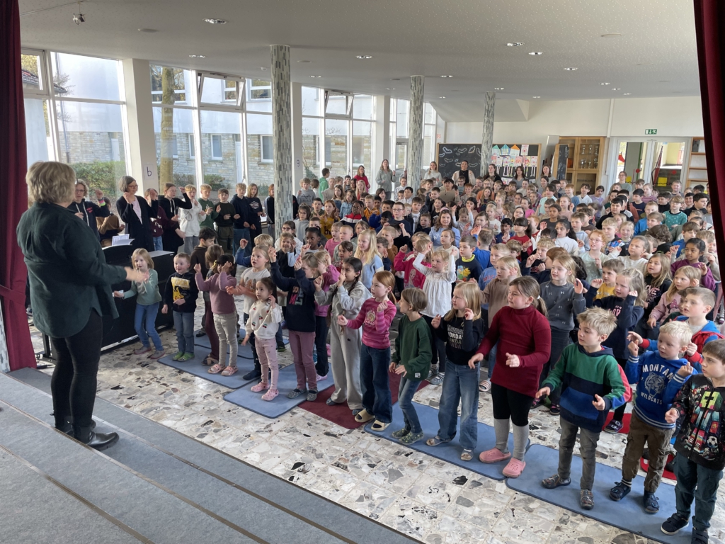 Um den Frühling zu entlocken ist die ganze Schule am letzten Schultag vor den Osterferien zu unserem Frühlingssingen in der Aula zusammengekommen. Ein großes Dankeschön an Frau Königsfeld und Frau Brenne, die dieses Singen gestaltet und organisiert haben.