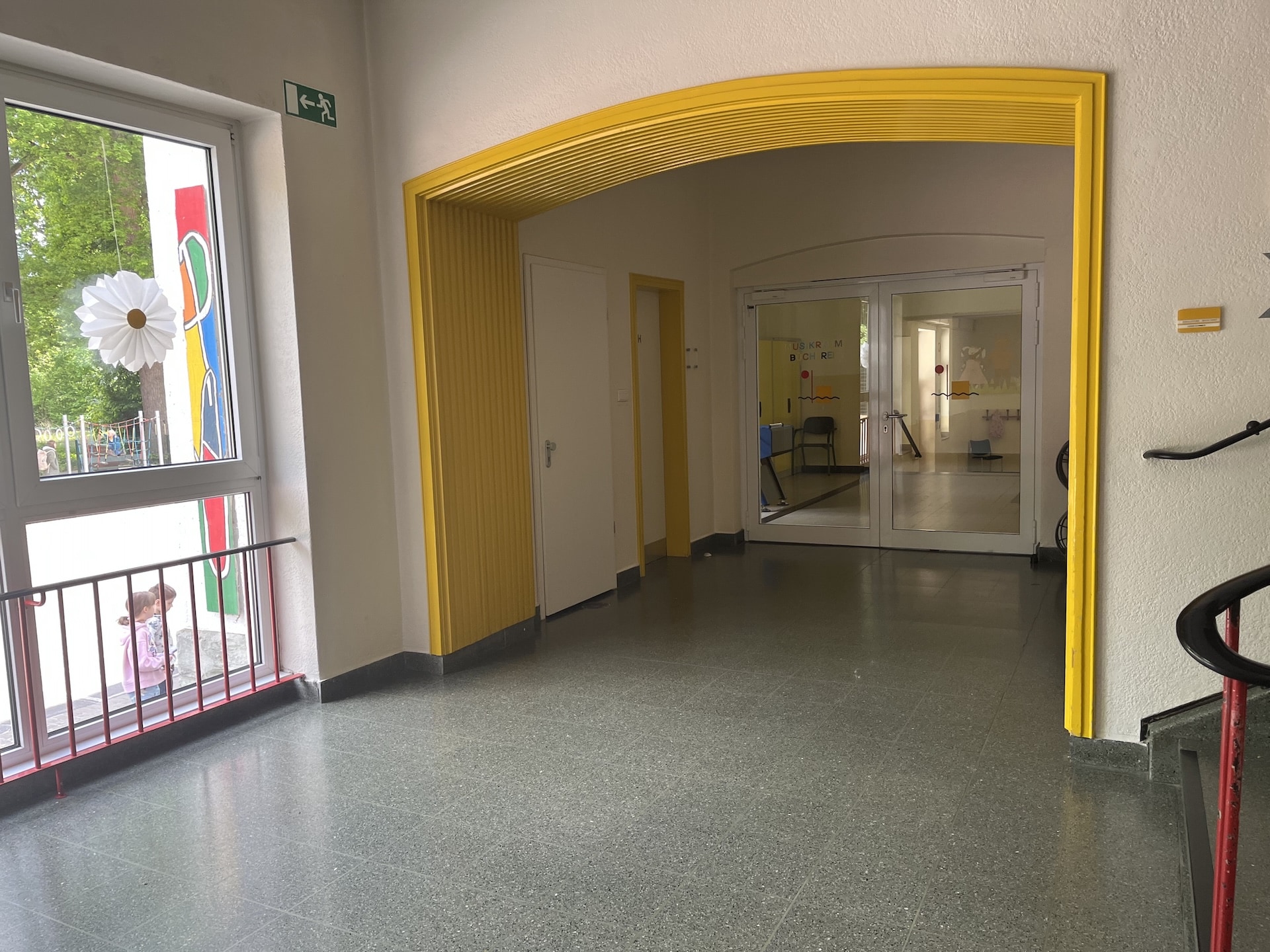 Unsere Schule ist ein Ort zum Lernen, Entdecken und Wohlfühlen. Auf diesem Rundgang laden wir Sie ein, unser Schulgebäude und das Schulgelände kennenzulernen. Die folgenden Fotos geben Einblicke in verschiedene Bereiche unserer Schule und zeigen die Räume, in denen unsere Kinder lernen, spielen und gemeinsam Zeit verbringen: